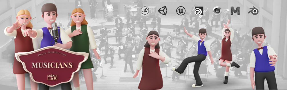 Musicians - Rigged 3D Characters + Bonus 12 Animations