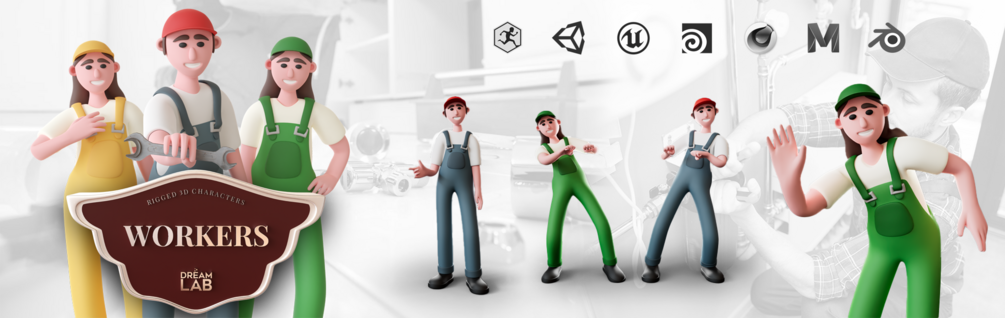 Workers - Rigged 3D Characters + Bonus 12 Animations